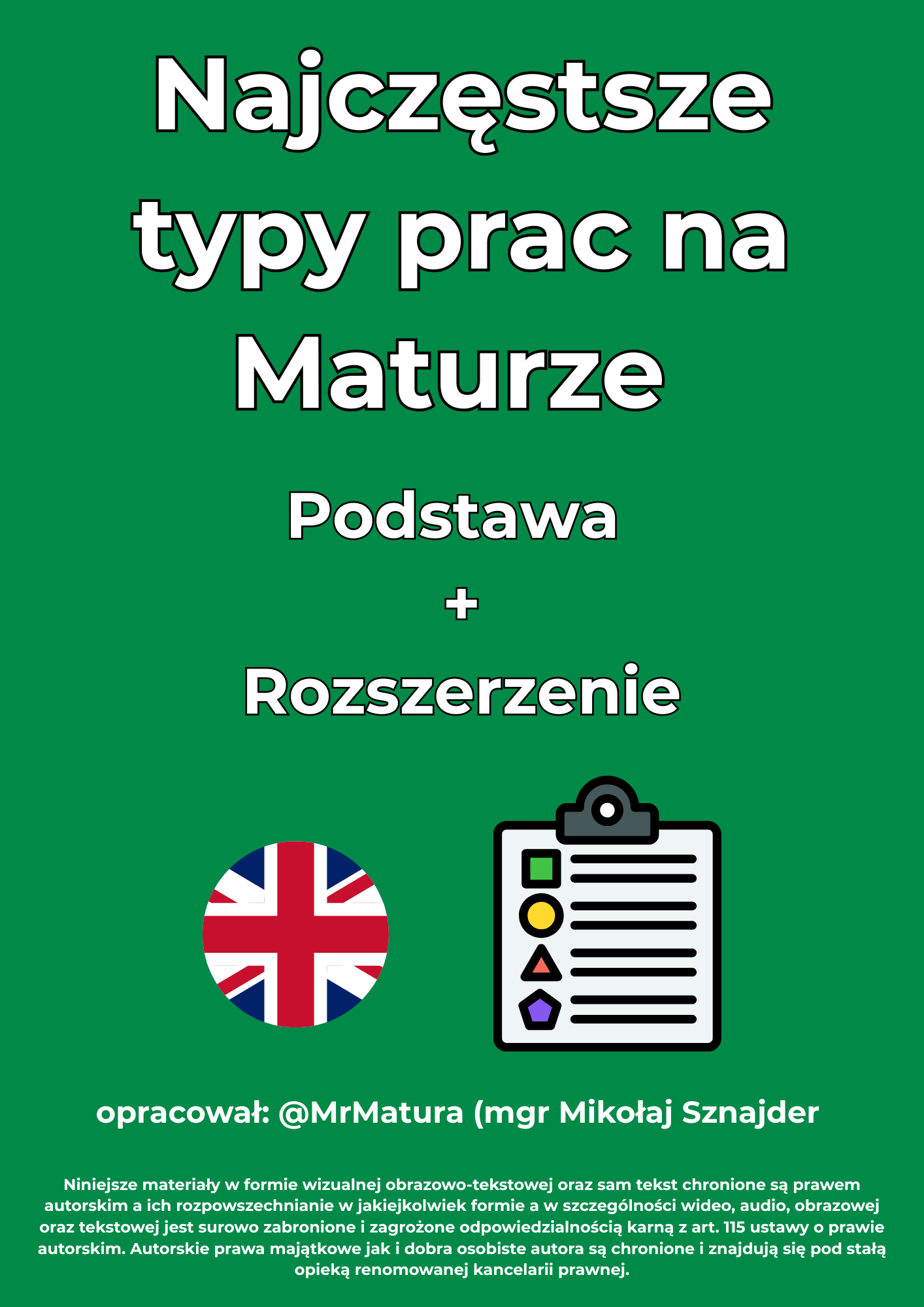 Najczęstsze typy Prac Pisemnych na Maturze Podstawowej i Rozszerzonej z języka angielskiego (wartość 100 zł)